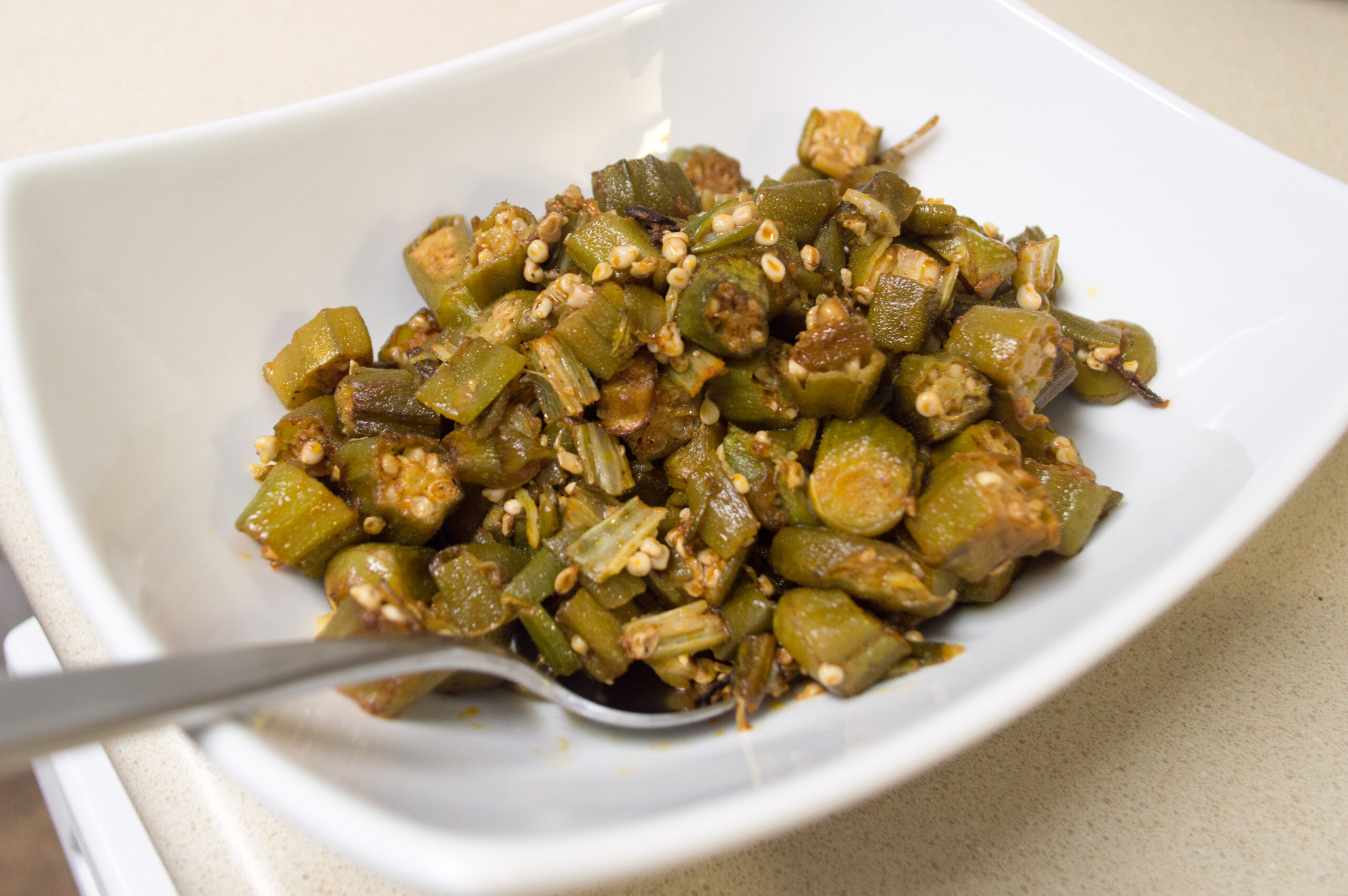 Okra baked with spicy sliced potatoes with heartwarming spices.