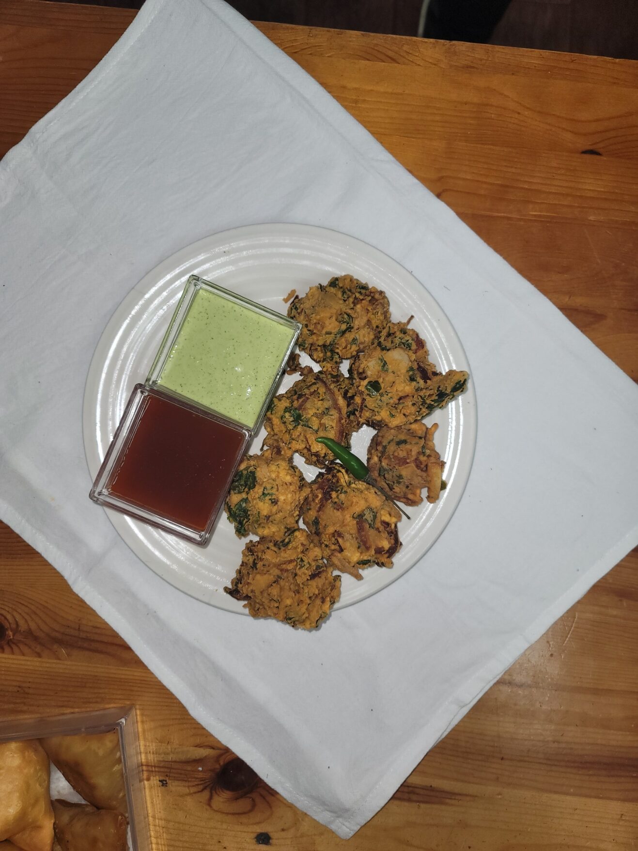 Yogurt/Pakora Curry House cultured yogurt with vegetable pakoras cooked with Indian spices. Served with basmati rice and naan.